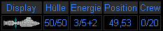Der Schiffsbildschirm (Brücke)Das ganze Zeug ist ein wenig geordnet. Nach dem Logbuch folgen Informationen über ihr Schiff. Jegliche aus der Datenbank eingelesenen Informationen sind durch einen grauen Rand gekennzeichnet. Die dazugehörigen Beschriftungen steht vor, oder über den Informationskästchen und hat einen grauen Hintergrund.