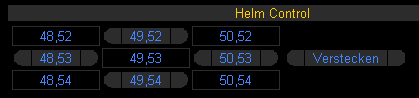 Die Navigationskontrollen dürften die am Meisten angeklickten Schaltflächen werden. Freunden Sie sich also schon mal mit ihnen an. Sie werden eine lange Zeit mit ihnen verbringen. Ihr Schiff kann nach oben, links, rechts oder unten gesteuert werden. Die Schaltflächen sind entsprechend angeordnet und mit Koordinaten beschriftet. Mit der Schaltfläche "Verstecken" können Sie Ihr Schiff in dichten Nebeln und Asteroidenfeldern vor LRS verbergen. Mit SRS werden Sie allerdings immernoch gesehen. Jetzt sollten Sie alles nötige Wissen haben, um Ihren Planeten zu finden und zu koloniesieren |